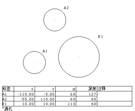 圆柱中的规划是一个表格,其中包含圆柱的中心位置、直径和深度。