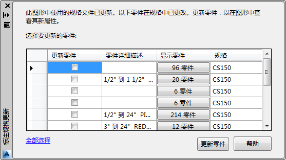 更新选定的零件标注。