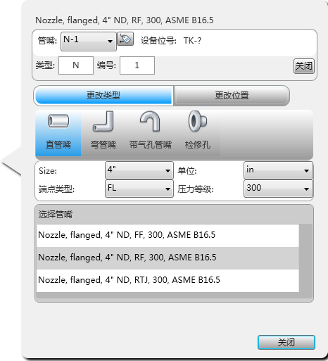 设置管嘴位号并指定要添加或更改的管嘴类型。