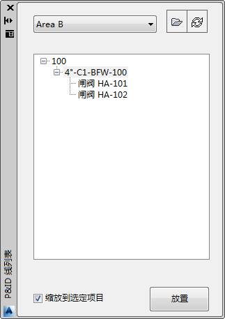 项目树中的每个节点均表示 P&ID 图形中的一个线段。