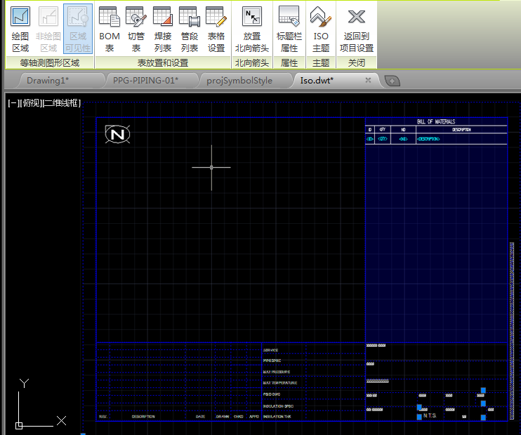 - 要放置表(BOM 表、切管表、焊接列表或管段列表)- 在功能区中的“表格放置和设置”面板中,单击所需的表,然后将其绘制在图形中(通常在蓝色表格区域中)。