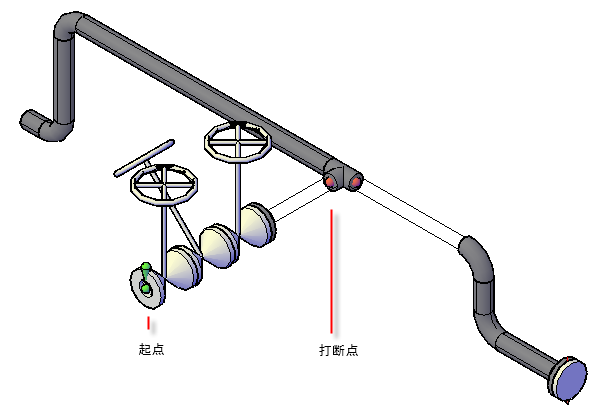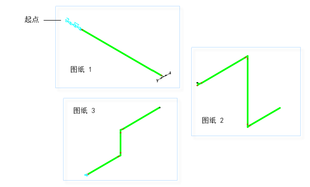 起点指定线在图纸 1 上的起点。打断点将等轴测图形拆分到图纸中。