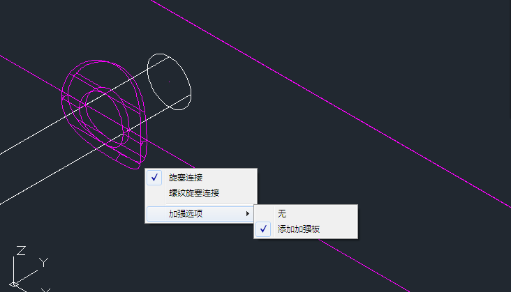 创建支管连接时,可以指定一个新接管道。创建新接管道后,可以添加一个加强板。