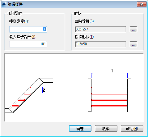 编辑台阶和楼梯形状的设置。