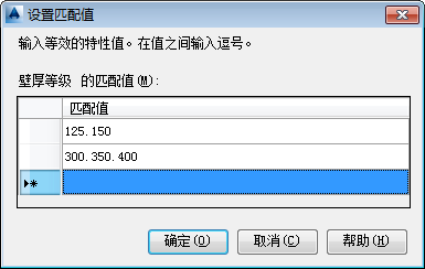 如果要匹配英制和公制值,请将第一个值指定为英制并将第二个值指定为公制。例如:大小为 4,100 或压力类别为 150,10PN。