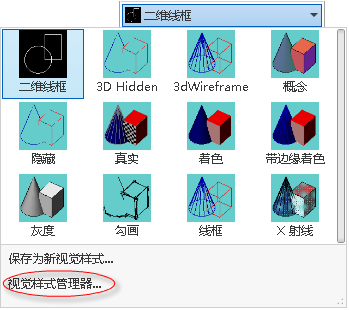 在“视觉样式管理器”选项板中,单击“图形中的可用视觉样式”