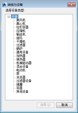 显示设备类型列表。单击要将 AutoCAD 对象转换为的设备类型。