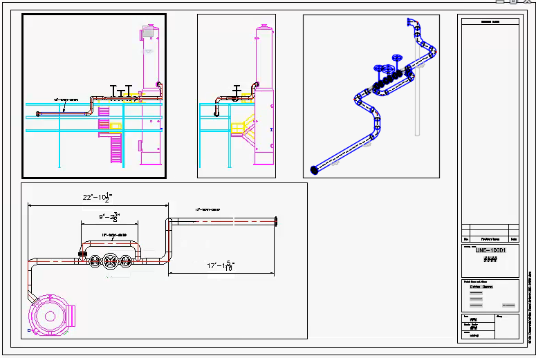 正交图形为 DWG 文件,且每个文件都可以包含多个具有从 Plant 3D 模型中提取的数据的正交视图。如果源模型更改,可以更新正交图形以反映这些更改。