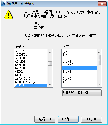 - 如果尺寸或等级库不匹配,请在“选择尺寸和等级库”对话框中,执行以下操作: