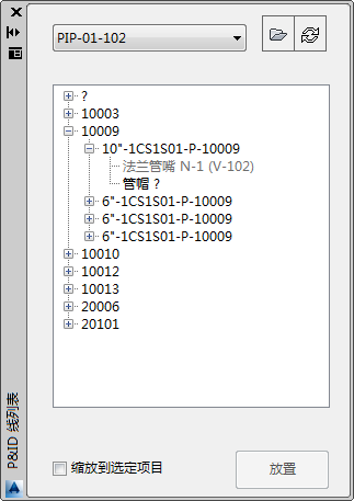 可以从“P&ID 线列表”中选择阀、管件和在线设备,并在模型中放置映射的 Plant 3D 对应对象。