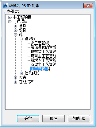 显示类别列表。单击要将 AutoCAD 对象转换为的类别定义。