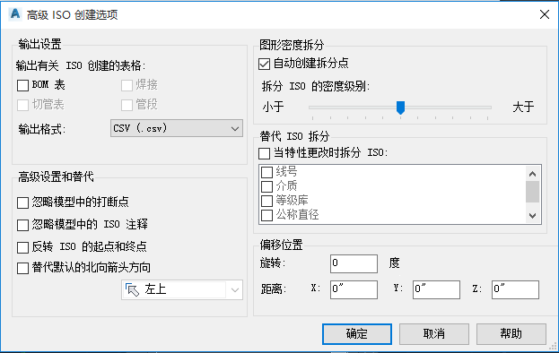 指定相较于生成的图纸数量,在 ISO 图形的图纸中允许的对象数量的首选项。设置“高”密度级别将导致更少图纸,在每张图纸上具有更多对象。