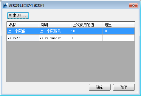 7. 在“选择项目自动生成特性”对话框中,单击“新建”。