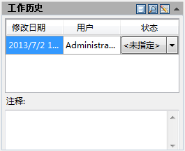 您可以在项目管理器的“工作历史”区域中输入任意图形的工作历史状态和注释。