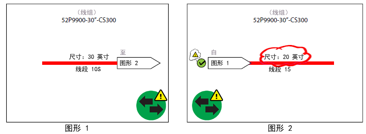 - 状态图标将指示两个图形中的线段特性不匹配。