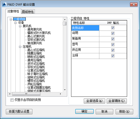 只有在项目打开时,才可设置 P&ID DWF 输出设置。