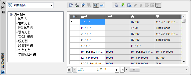 如果选择使用数据管理器构建报告,可以基于现有报告样板创建新的报告类型。样板中包含设备、线、线摘要、仪表、阀、管嘴等对象的列表。