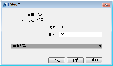 在“指定位号”对话框的“TargetObject.Number”框中,输入线号(例如:105)。