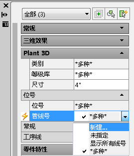 在“特性”选项板中,单击“Plant 3D”