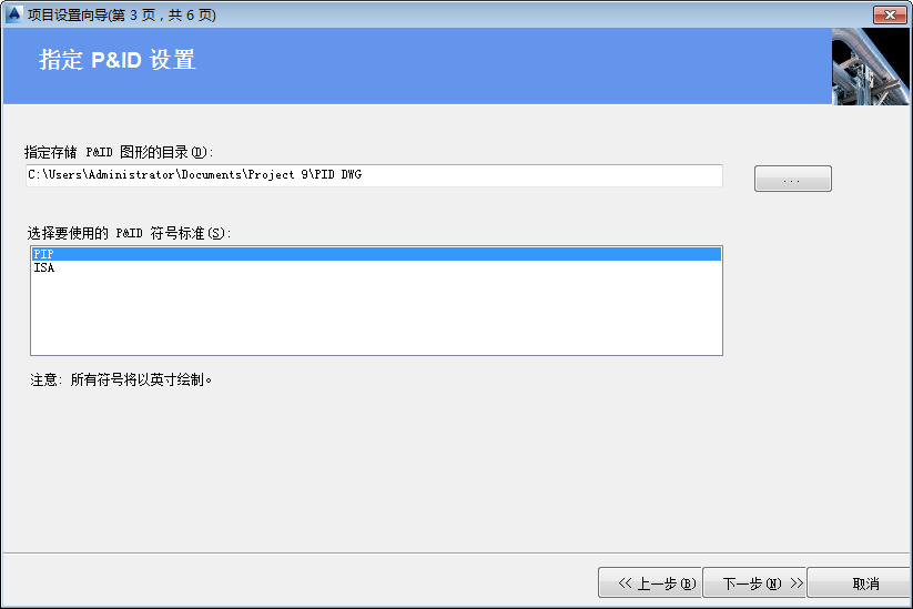 “项目设置向导”页面 3 - 指定 P&ID 设置