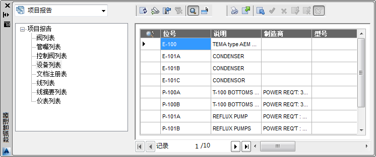 显示项目中的设备数据的报告。