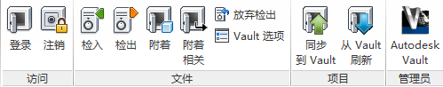 您可以从功能区管理 Vault 登录任务和 Vault 项目文件。