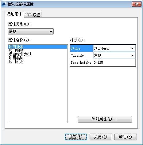 - 继续选择属性、调整格式并将属性放置到标题栏中。