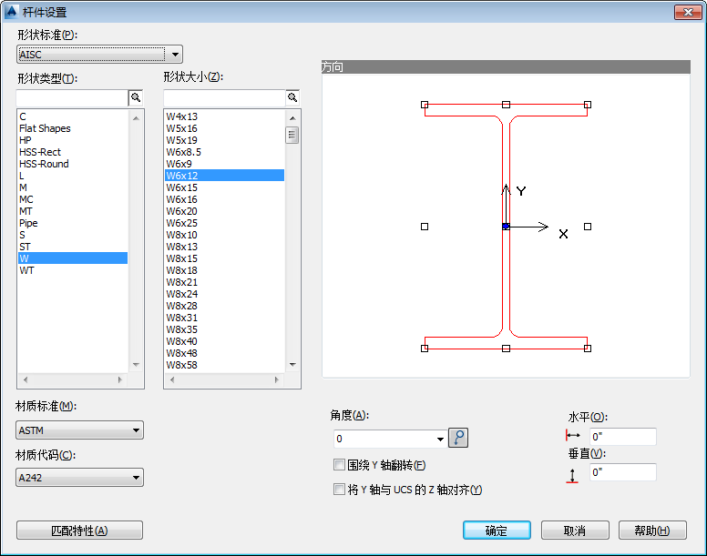 在“材质标准”列表中,单击要用于新创建杆件的所需材质标准。