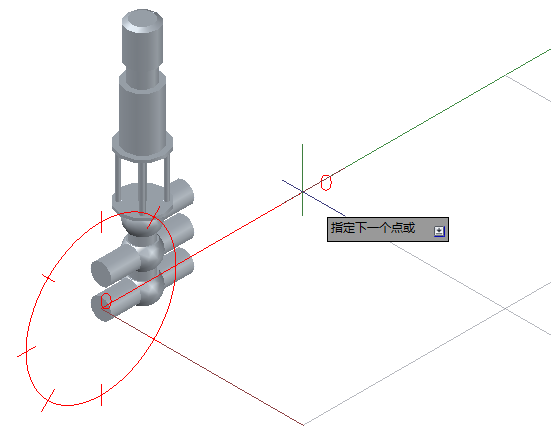 - 对于起点,使用节点捕捉 (NOD) 指定阀一侧上的端口。