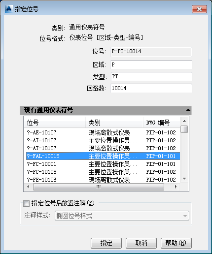 如果管理员已设置位号格式,在添加需要位号的元件或线时将显示“指定位号”对话框。