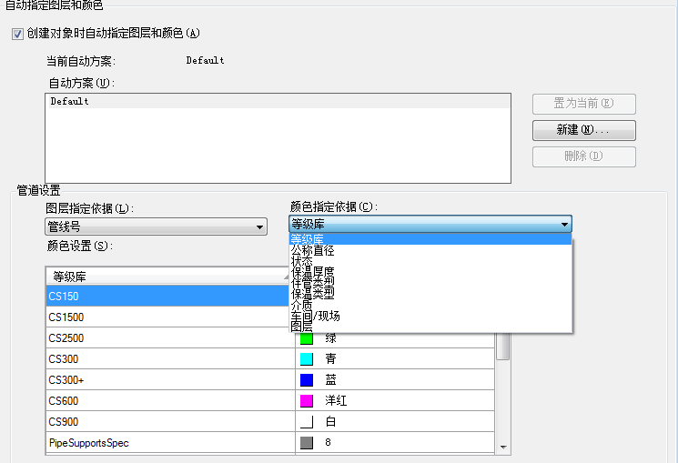 - 在“自动指定图层和颜色”窗格上的“颜色指定依据”列表中,单击该新项目。