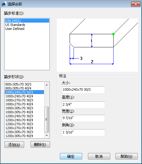 设置台阶的几何图形设置。括号内指明的数值与预览图像中位号的几何图形相对应。