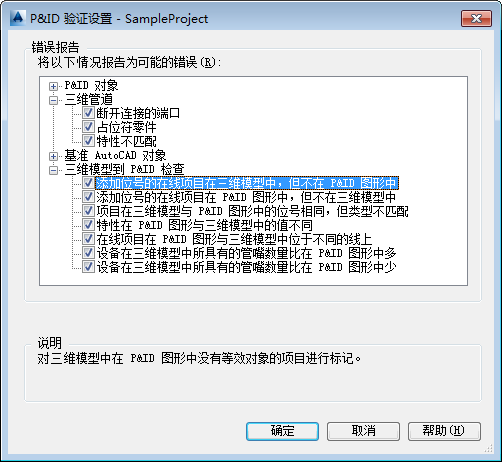 有两种类型的验证,一种用于单独的模型,另一种用于与其关联的 P&ID 图形相关的模型。