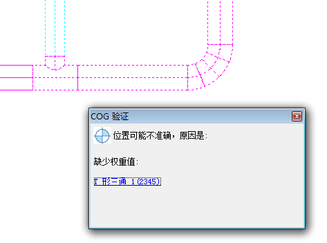 如果实时重心处于启用状态,且您选择了不具有权重的管道、管道支撑或设备,将显示“重心验证”对话框。验证对话框将列出不具有权重的选定对象。