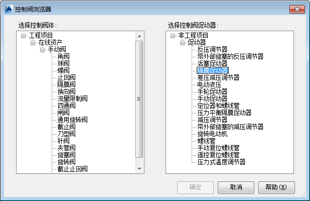 “控制阀浏览器”对话框