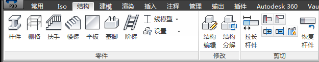 “结构”选项卡显示用于处理结构的选项。此选项卡包括以下面板: