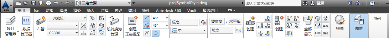 三维管道“常用”选项卡是“三维管道”工作空间的一部分。