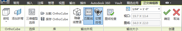 “正交视图”选项卡显示用于处理正交图形的选项。此选项卡包括以下面板: