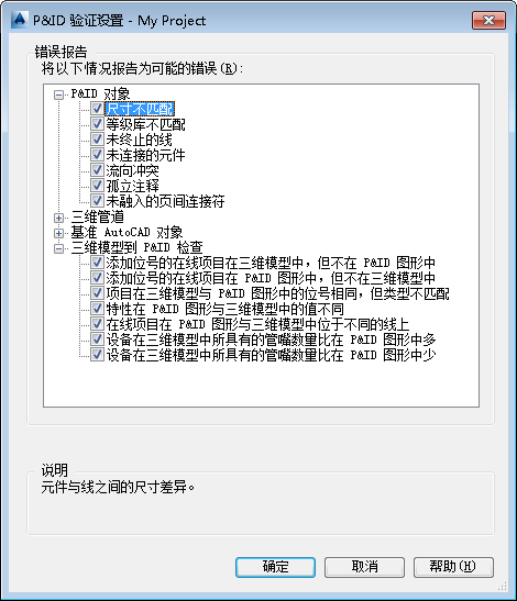 指定要标记的 Plant 3D 错误类型的步骤(仅限于 Plant 3D)