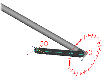 在绘图区域中单击以指定弯头角度(例如:30)。