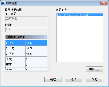 显示可以加载到临时图形中的可用已保存正交视图列表。双击列表名称可对其重命名。
