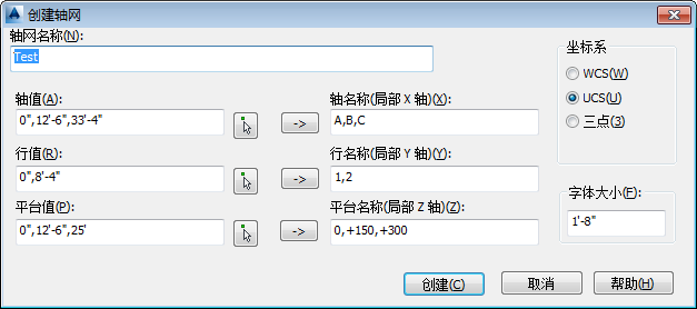指定通过“拾取点”按钮定义或输入的轴名称。