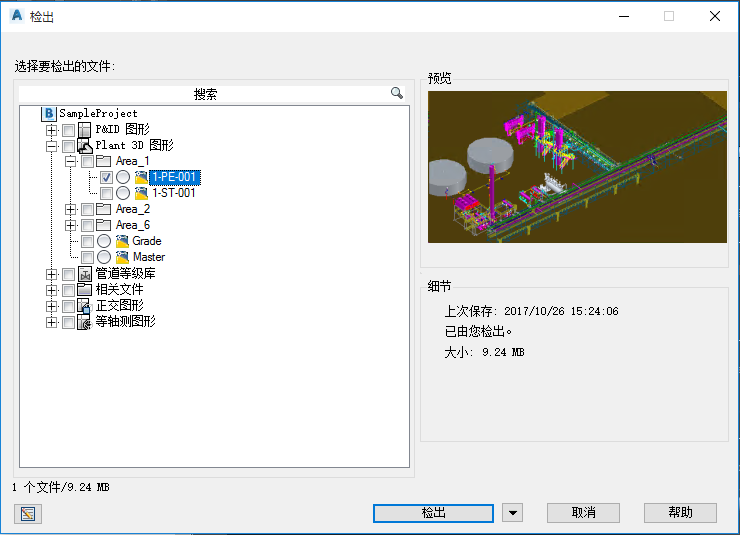 选择要检出的单个文件、多个文件或文件夹。 单击树中的复选图标,以选择或清除已选中位置的检出。