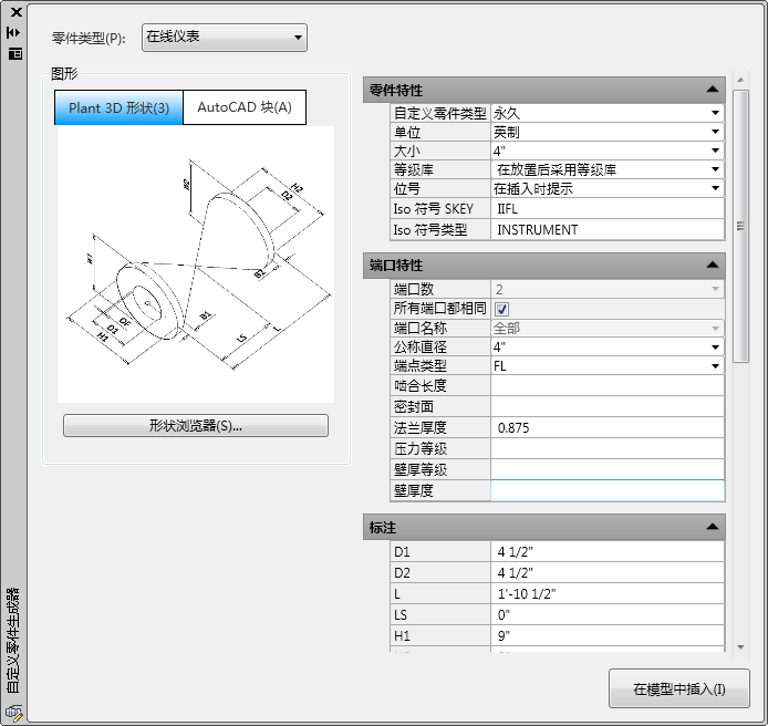 使用基于块的几何图形创建元件,该几何图形使用 PLANTPARTCONVERT 添加了端口。如果块没有指定端口,该块将在单独的窗口中打开。