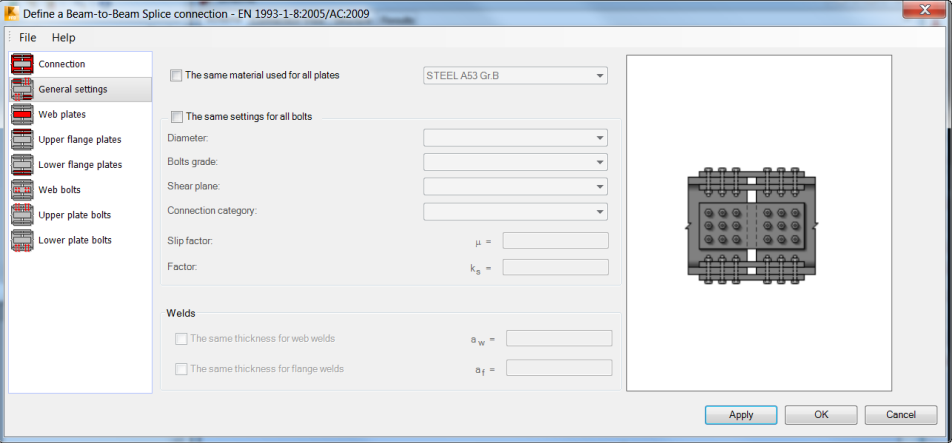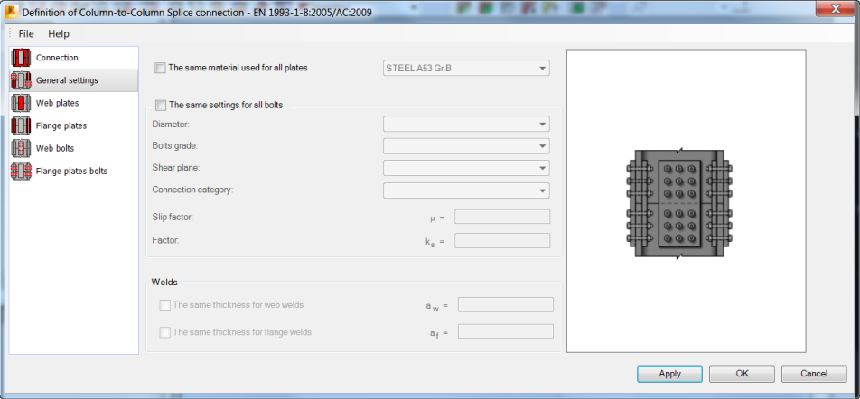- 选择一个或所有可用选项来设置腹板焊缝和翼缘焊缝的厚度。