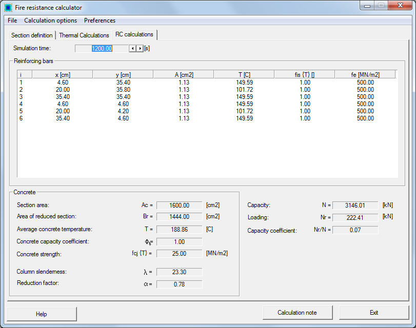 The following results of RC calculations are presented for every time step.