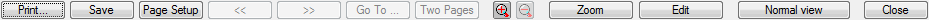 Two of the options contained in the menu are worth being discussed in detail because they are useful during the preparation of the documentation for a designed structure. Once the preview is activated, the mouse cursor is in zoom mode. Clicking Edit will change the cursor to selection and edition. When the cursor is in this mode, clicking an object in the print preview allows editing of the view of the structure or a table. If the view of the structure (such as adding a new bar to the structure) or of the table (such as adding a new column to the table) is edited, clicking Return to Preview makes changes introduced in the view of the structure or table to be automatically included in printout composition (visualized in print preview). Click the Zoom button in the menu of print preview to return to zoom mode.