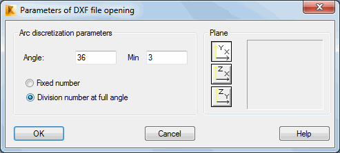 After the option is selected, the Parameters of DXF file opening dialog displays.