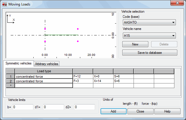 The dialog lets you select a vehicle to add to the active list of vehicles in the Moving Loads dialog. There are 2 vehicle types available: