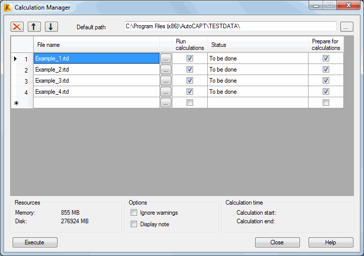 - Execute - Click to run calculations / preparation of results for indicated structure models files in the list. Files will be calculated according to the order on the list.